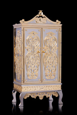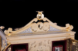 With the five books of Psalms, illuminated and bound in leather & silver.